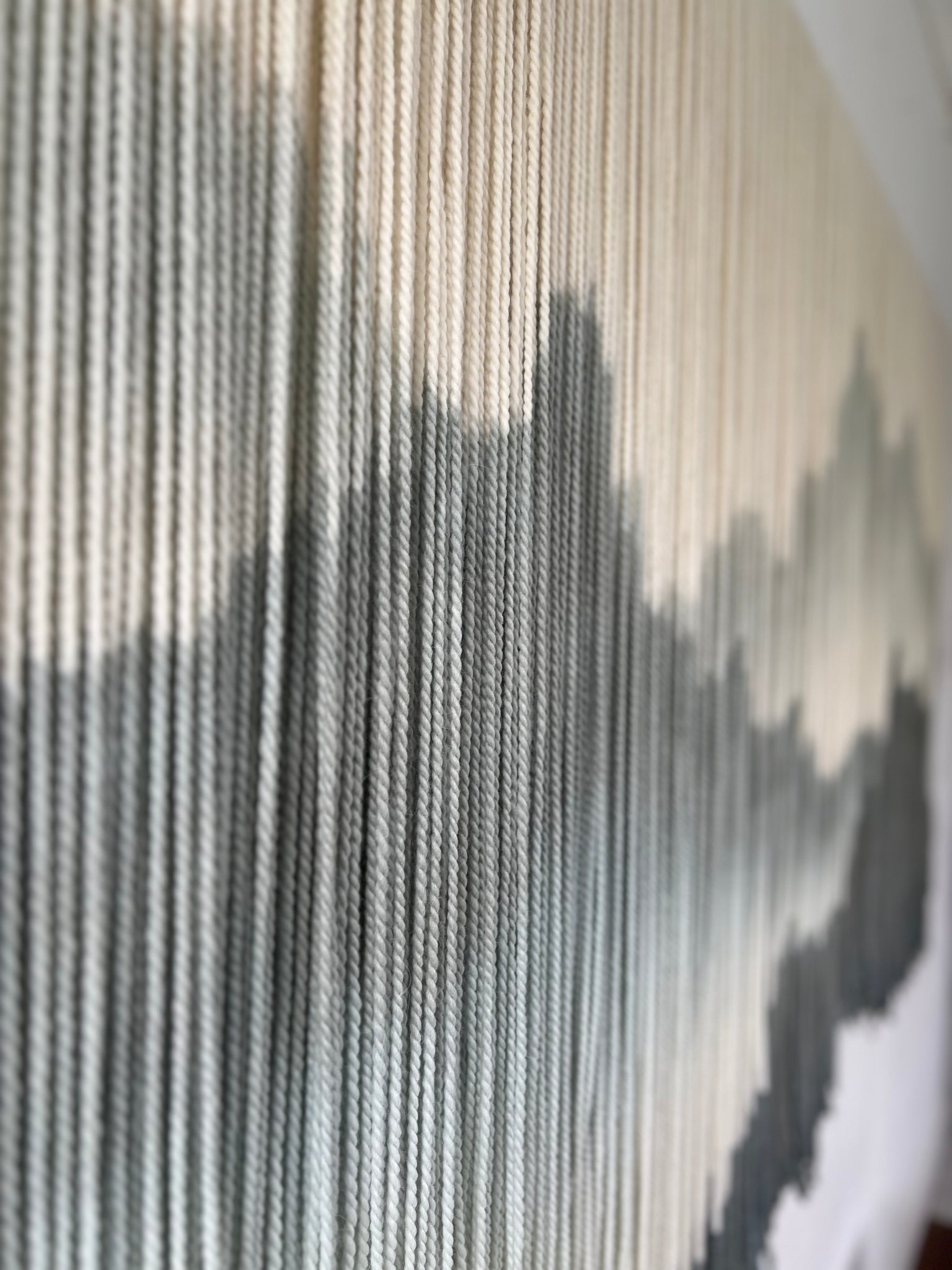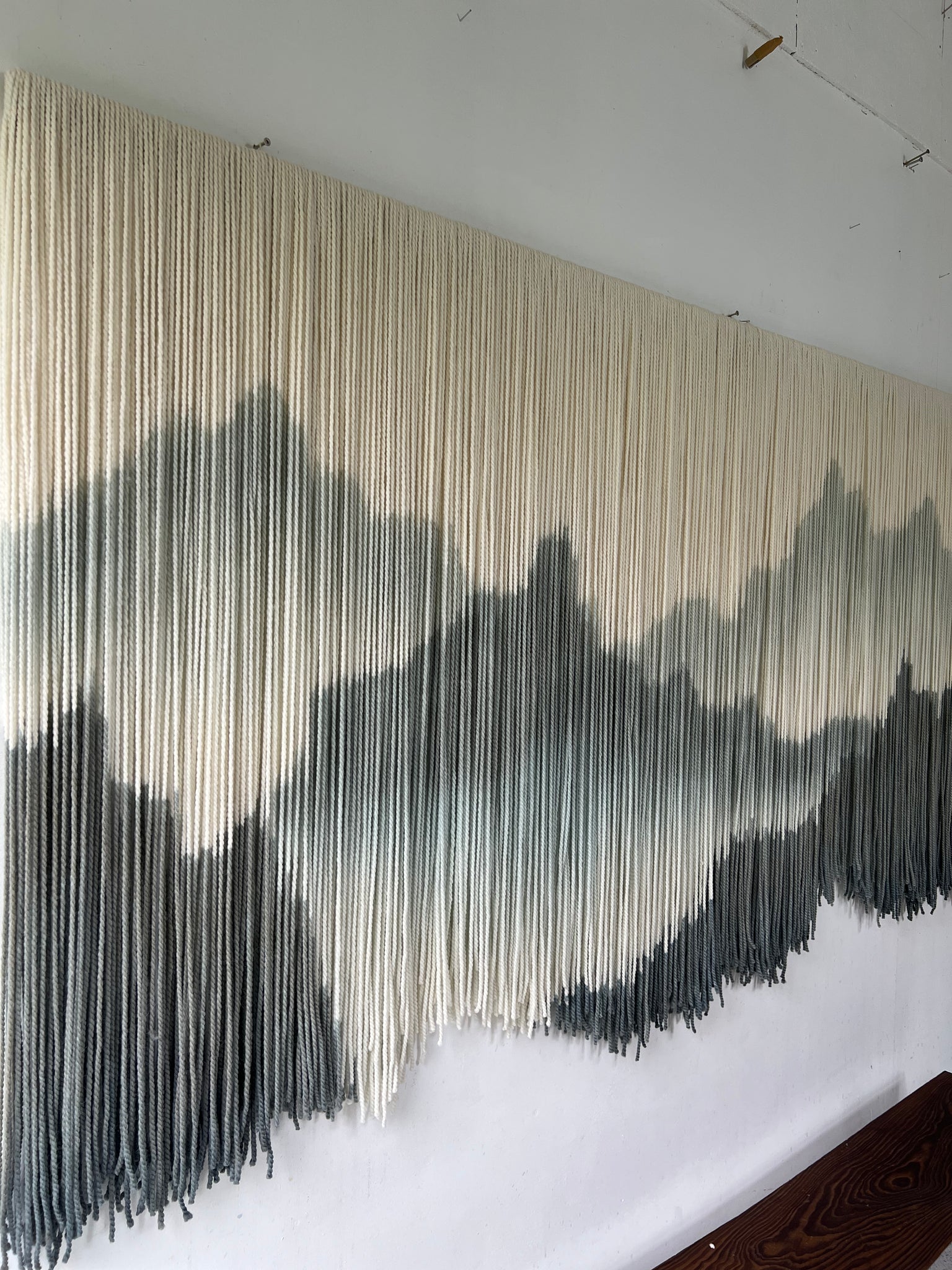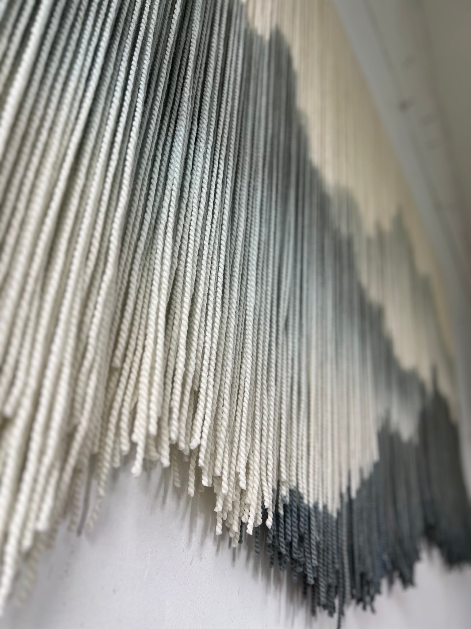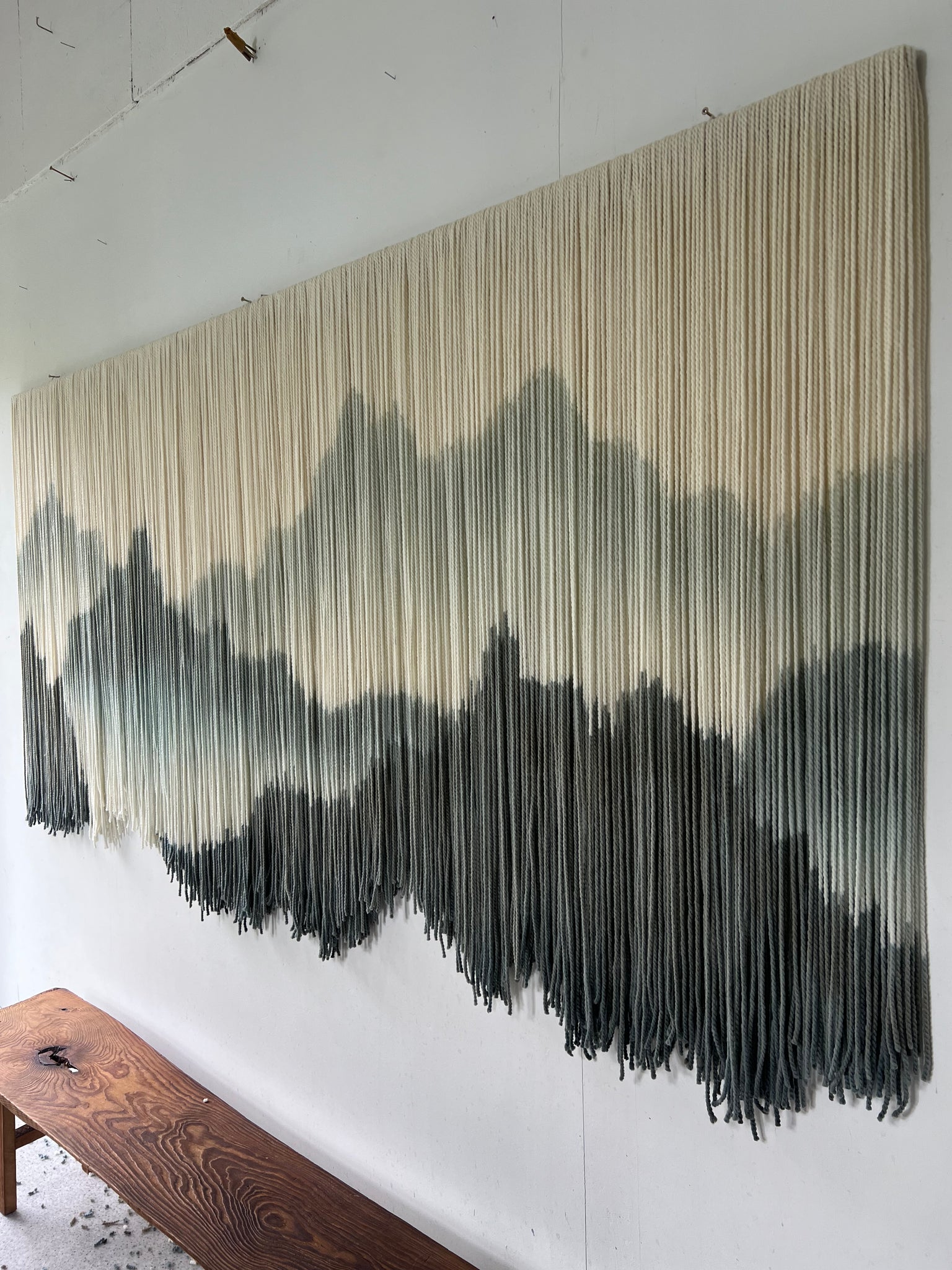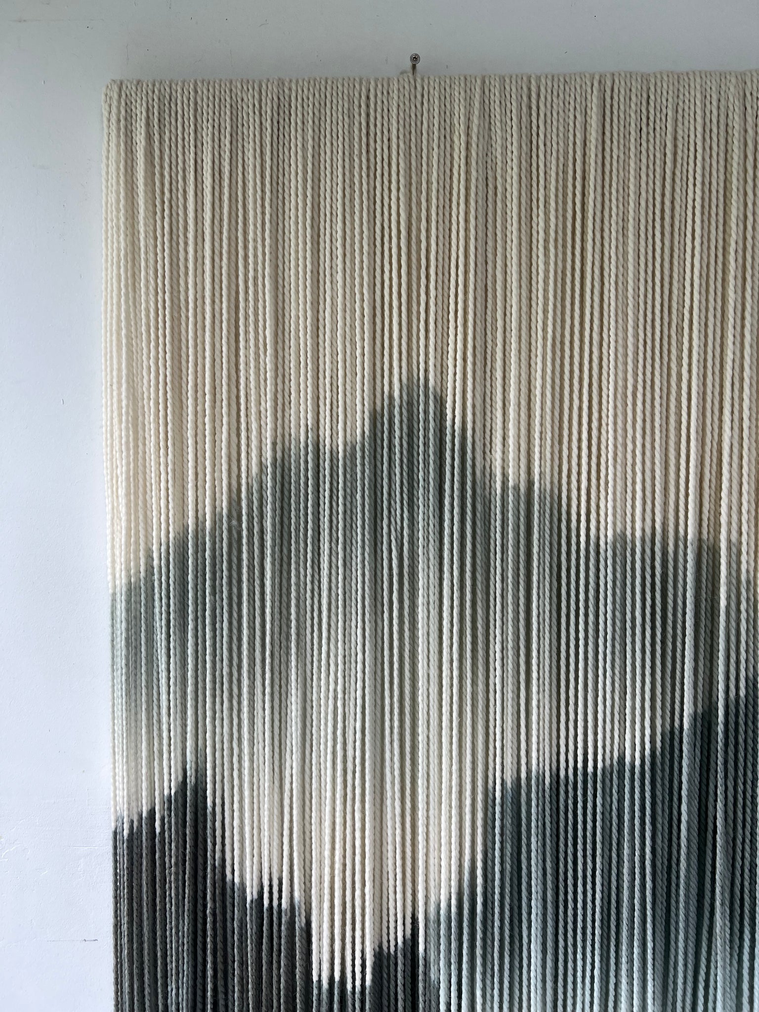 This dip dye wall hanging, is made of natural color soft wool hand dyed in shades of gray and blue finished with a concealed wood panel. Fiber art like this will suit perfectly a minimalist living room, bohemian bedroom and modern office.