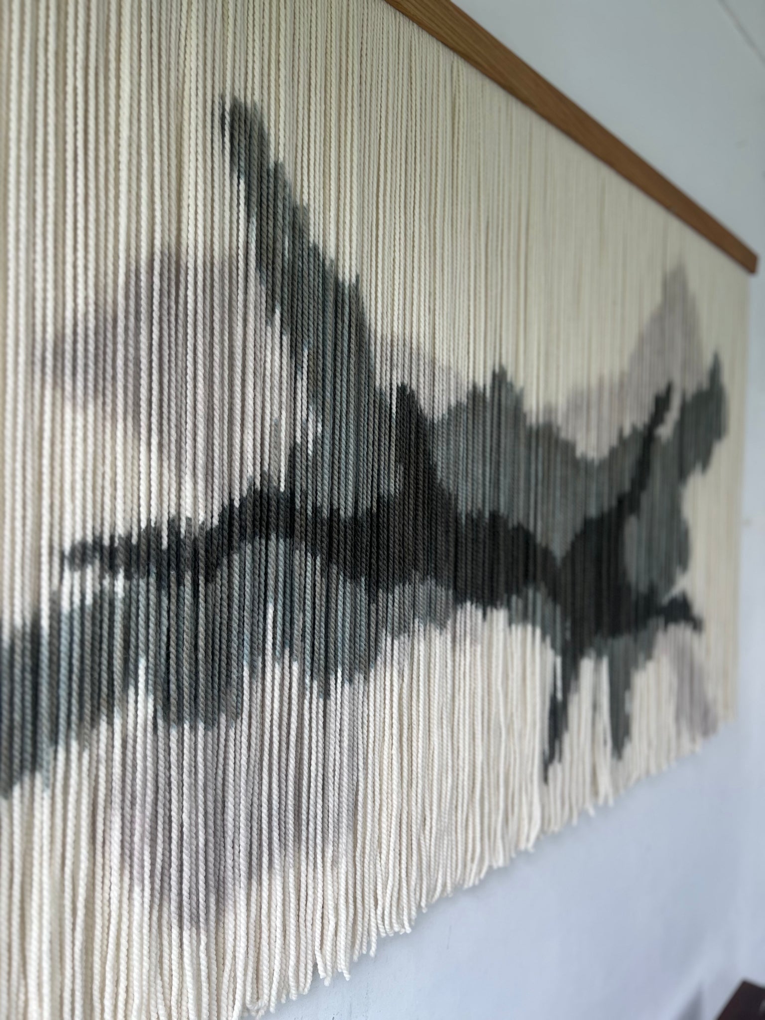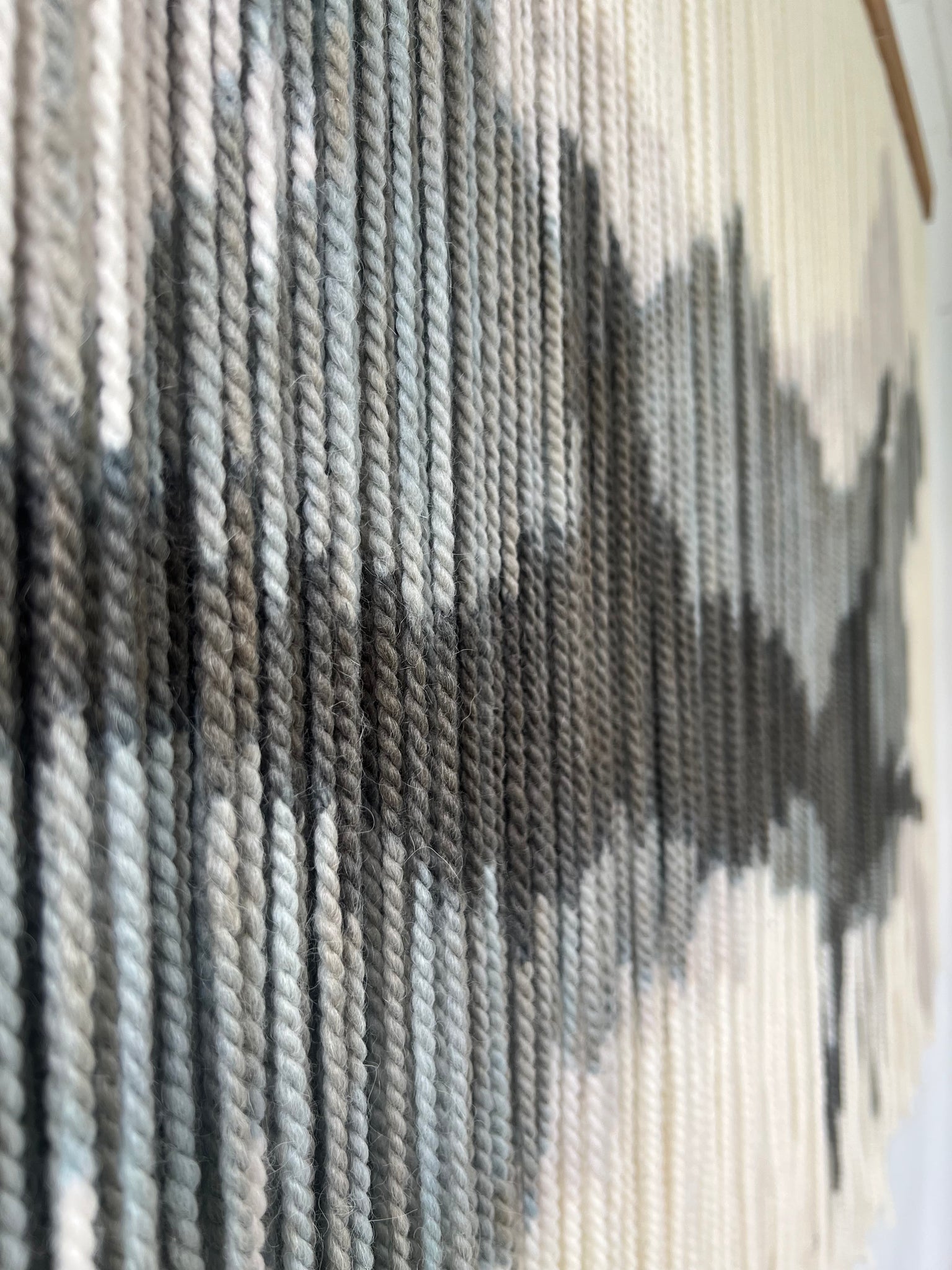 This dip dye wall hanging, is made of natural color soft wool hand dyed in shades of gray, and charcoal finished with an oak wood panel. Fiber art like this will suit perfectly a minimalist living room, bohemian bedroom and modern office.
